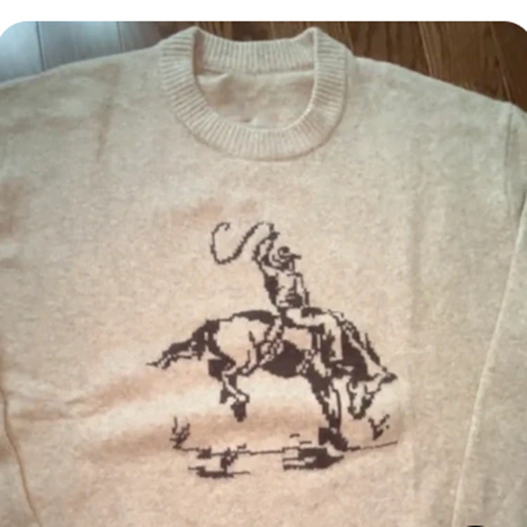 Women's Comfortable Pullover Sweater Iconic Equine Design Cotton